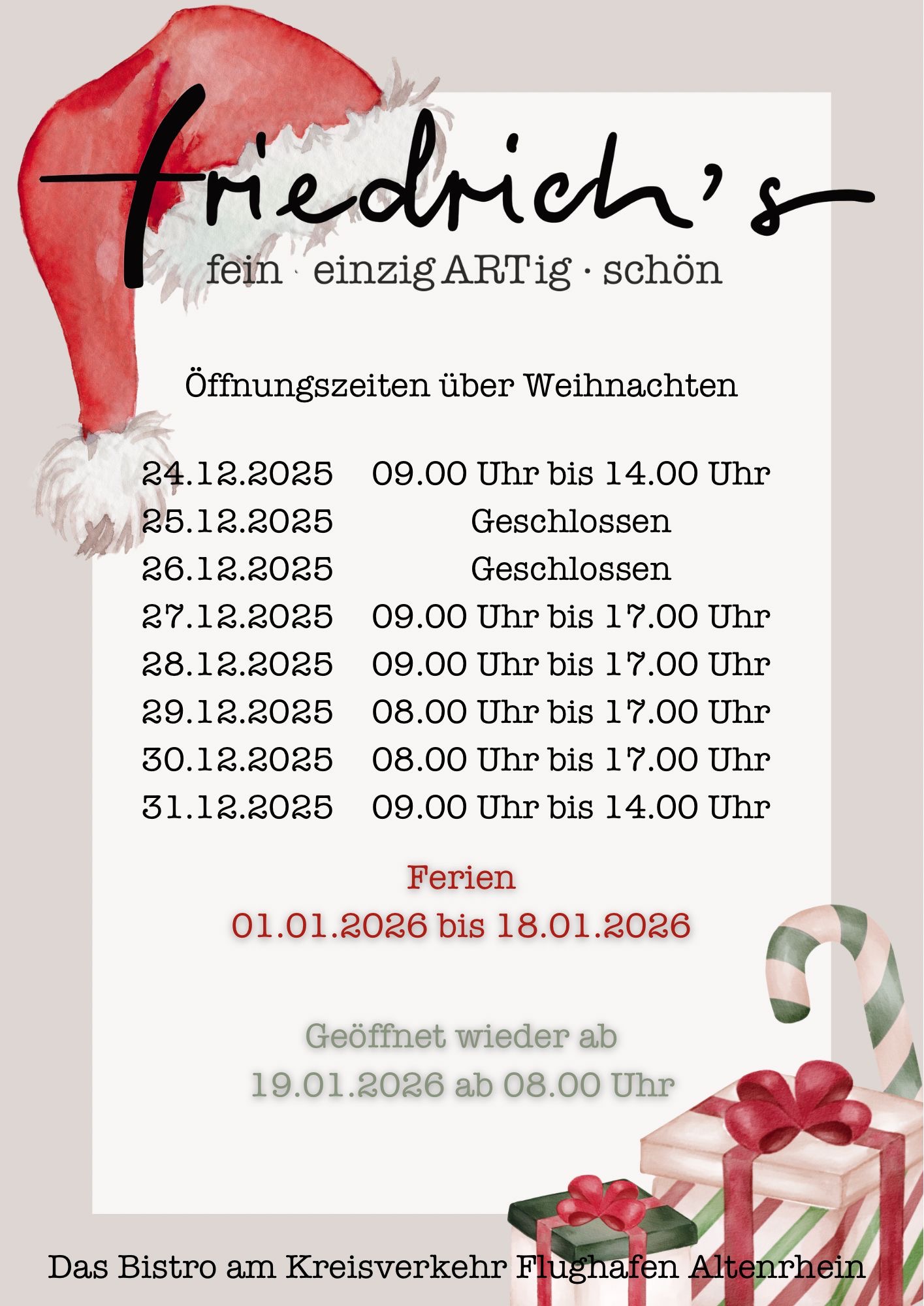 Spezielle Öffnungszeiten über Weihnachten/Neujahr